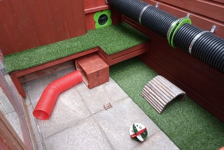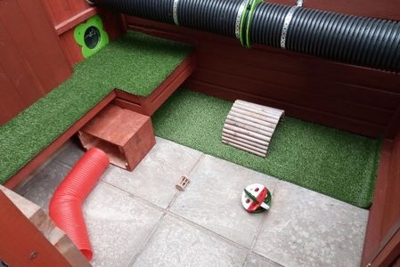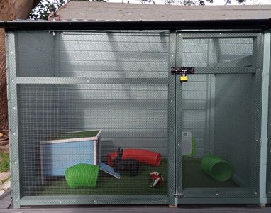 2 enclosures are accessible via long tunnels for active, adventurous, fun-loving rabbits.