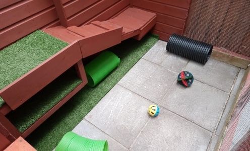 Your rabbits will be housed in purpose-built accommodations conforming to the requirements suggested by the RSPCA & RWAF (6ft x 2ft x 2ft) in a safe, dry location. Access to outside play areas is provided via tunnels.