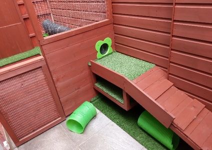 2 enclosures are accessible via a small door for less agile rabbits or special needs rabbits that are less active.